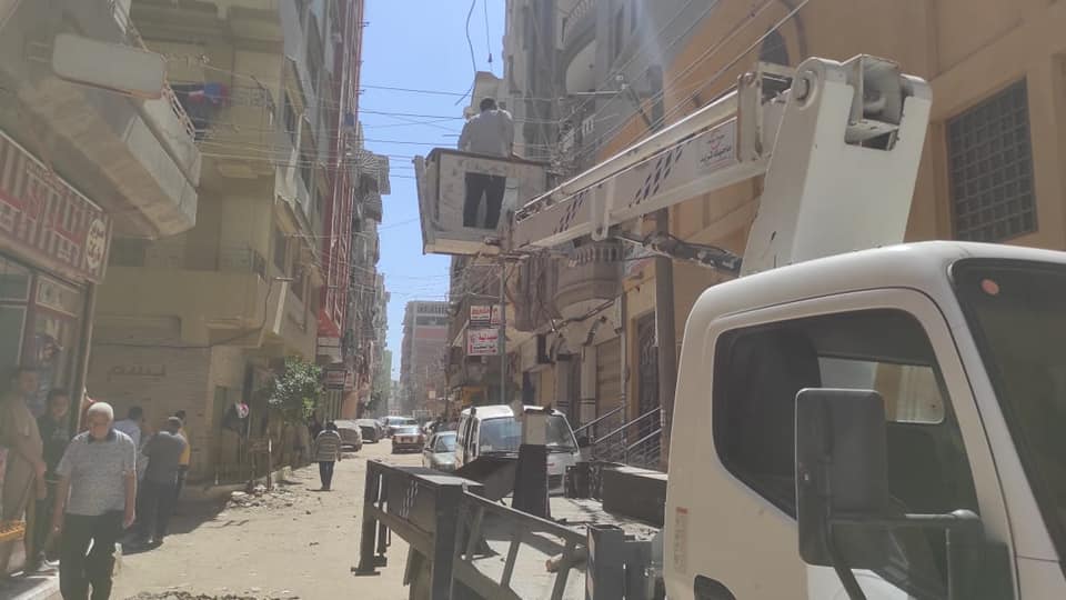 حملة لمراجعة أعمدة الإنارة بشوارع حي شرق المنصورة
