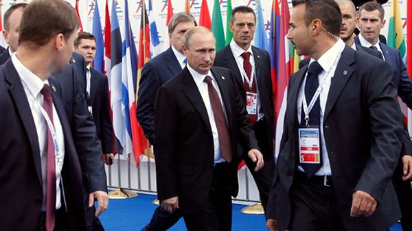 يحيط فلاديمير بوتين، الرئيس الروسي، نفسه بنخبة من الحراس الشخصيين ذوي الكفاءة العالية، يرافقونه ويراقبون حركاته وأنفاسه يرتدون واقيات الرصاص ومعهم مسدسات فائقة الدقة والقدرات.