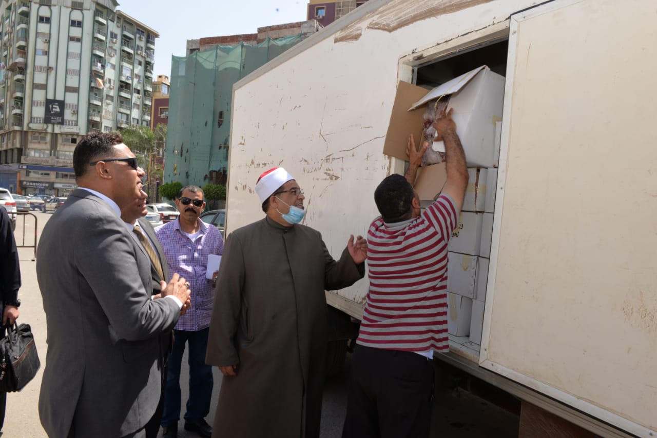وثمن محافظ الدقهلية، جهود وزارة الأوقاف والتضامن الاجتماعي من خلال توزيع صكوك الطعام سواء كانت لحوم أو سلع غذائية متنوعه علي الأسر الأولي بالرعاية علي مستوي الجمهورية .
