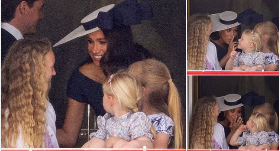 وانضم الأمير هاري البالغ من العمر 37 عامًا، وميجان ماركل البالغة من العمر 40 عامًا لمشاهدة الحدث العسكري المذهل من مكتب الميجور جنرال المطل على أرض استعراض وايت هول حيث لا تتم دعوة أحد سوى كبار أفراد العائلة المالكة إلى الإنضمام لشرفة القصر بجانب الملكة .