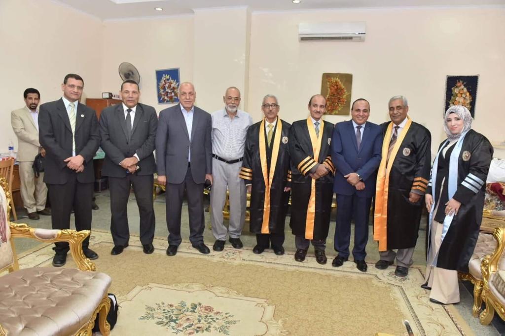 وضمت لجنة المناقشة والحكم كلا من : الأستاذ الدكتور سامح ريحان، أستاذ التربية والأستاذ الدكتور محمود أحمد نصر،أستاذ المناهج وطرق التدريس بجامعة بنى سويف والأستاذ الدكتور عبد العظيم زهران، الأستاذ المتفرغ فى التربية بجامعة سوهاج  وبحضور الدكتور خالد عمران، عميد الكلية والدكتور مصطفى رجب عميد الكلية الأسبق، والدكتورة فيفي أحمد توفيق رئيس قسم أصول التربية بالكلية، وعدد من وكلاء كلية التربية بجامعة سوهاج وأعضاء هيئة التدريس بالكلية.