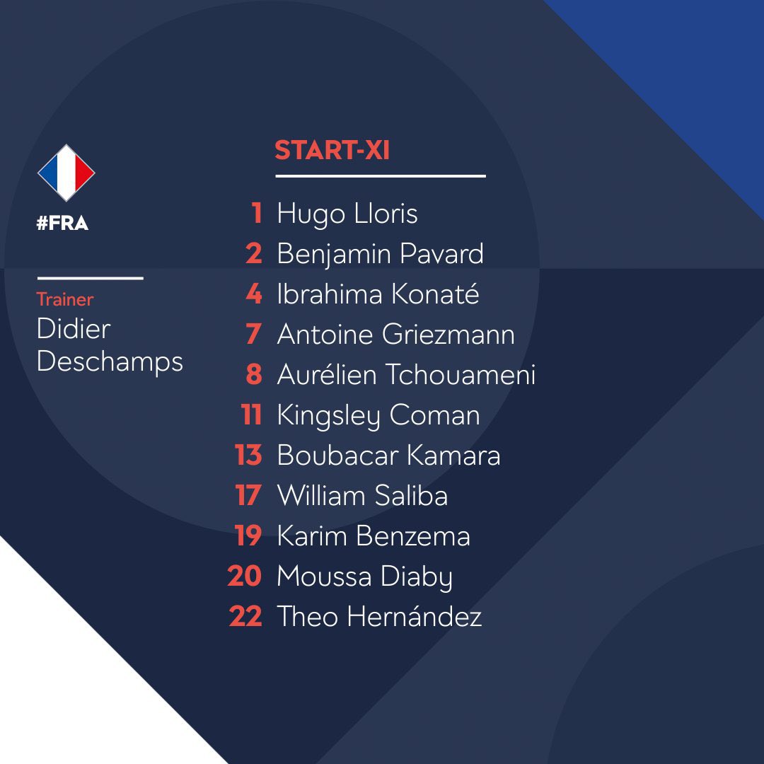 وجاء تشكيل فرنسا الرسمى كالتالى: