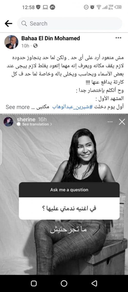 أثارت المطربة شيرين عبدالوهاب غضب الشاعر بهاء الدين محمد بعدما أعلنت عبر حسابها "إنستجرام" عن ندمها على أغنية "ماتجرحنيش".