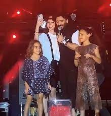 وخلال الحفل ظهرت زوجة تامر حسني وبناتهما على المسرح، وشاركوه أغنية "بحبك" وأظهر لزوجته "بسمه بوسيل" مشاعر الحب أثناء غناءه ، وكان ذلك المشهد حديث جمهوره لفترة بعد نهاية الحفل.