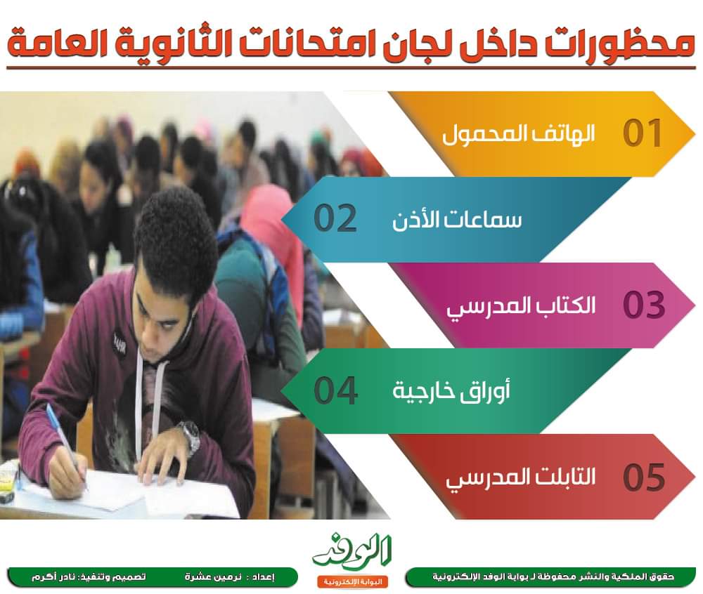 إنفوجراف| 5 محظورات داخل لجان امتحانات الثانوية العامة