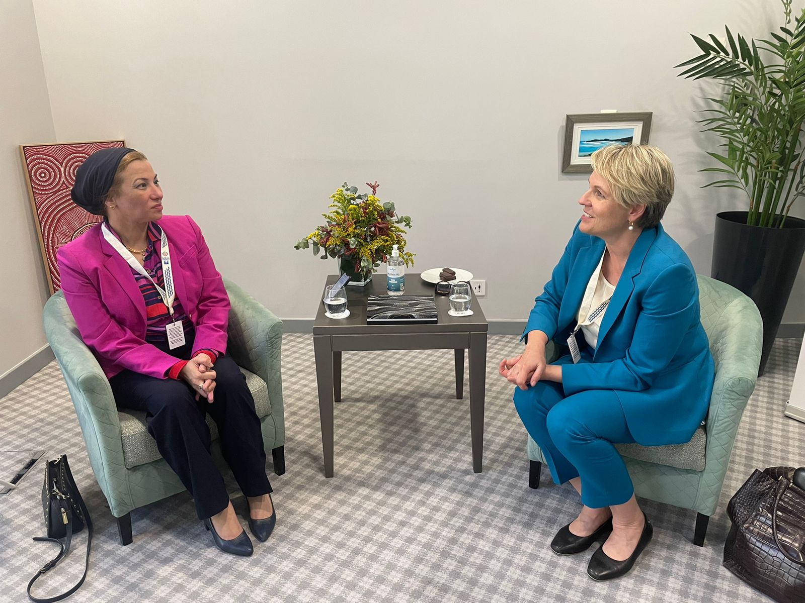التقت الدكتورة ياسمين فؤاد، وزيرة البيئة مع السيدة Tanya Plibersek وزيرة البيئة الاسترالية، على هامش مشاركتها في مؤتمر الأمم المتحدة المعني بالمحطات ٢٠٢٢ بلشبونة، والذي تستضيفه حكومتا البرتغال وكينيا خلال الفترة من 27 يونيو إلى 1 يوليو 2022 تحت شعار "أنقذوا محيطاتنا، واحموا مستقبلنا"، حيث بحثتا سبل التعاون الثنائي في موضوعات صون التنوع البيولوجي في ظل التكيف مع آثار تغير المناخ، وإدارة المياه، و تكنولوجيا إنتاج بدائل الأكياس البلاستيكية أحادية الاستخدام، بالإضافة إلى دعم أجندة العمل المناخي من خلال استضافة مصر لمؤتمر المناخ القادم COP27.