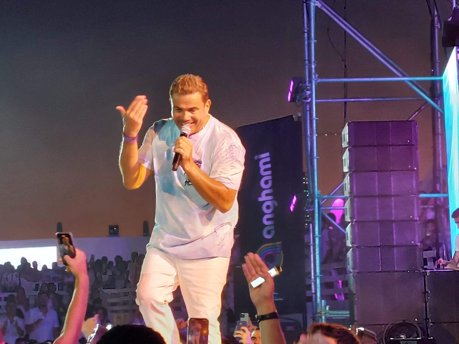 وتفاعل الحضور مع أغنيات عمرو دياب التي أداها على المسرح أمام جمهوره.
