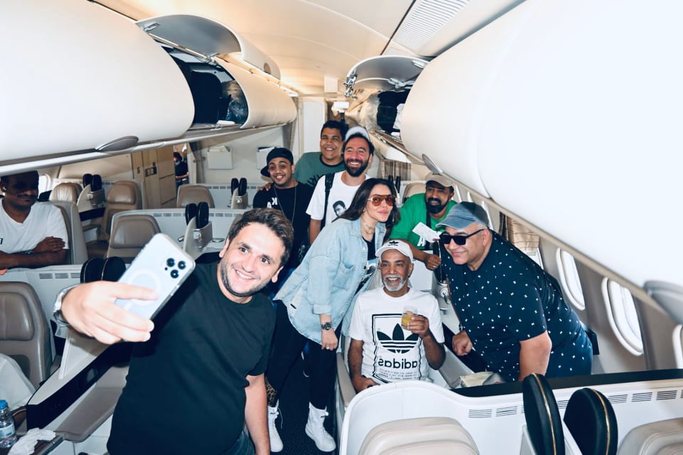وسيطرت أجواء المرح على فريق العمل خلال رحلتهم فى الطائرة حيث التقطت صور لهم وهم فى أجواء كوميدية، وحافظ النجم مصطفى خاطر على التقاط صور لفريق العمل خلال الرحلة وتوثيق لحظاتهم معًا.
