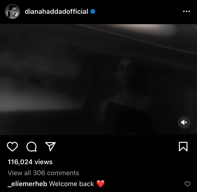 وفاجأت ديانا حداد جمهورها بنشر مقطع فيديو قصير مدته 14 ثانية بالأبيض والأسود عبر حسابها الشخصي بموقع تبادل الصور والفيديوهات "انستجرام"، ولم تُرفقه بأي تعليق.