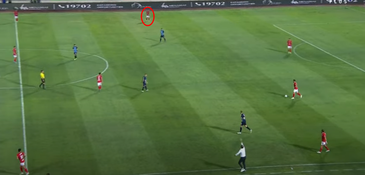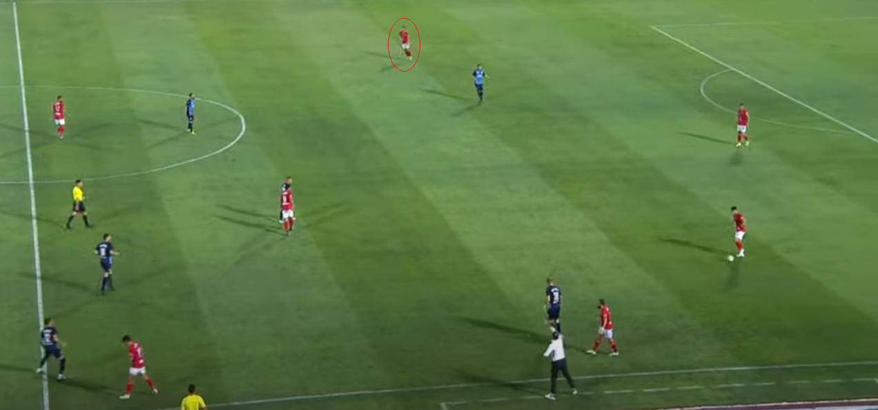 أيضا عدم يوفر كريم فؤاد خيار التمرير بعرض الملعب من أجل تطبيق الأهلي لتكتيك تبديل اللعب بالتمرير القطري من أيمن أشرف في المساحة نحو الجبهة اليمنى، حيث ظهرت إشارات المدرب البرتغالي لكريم فؤاد في أكثر من مرة لكي يتمركز بالشكل الصحيح لكن ظهير الأهلي الأيمن ارتكب أخطاء في التمركز في أكثر من موقف عن طريق عدم تواجده في المساحة المطالب بالتمركز فيها.