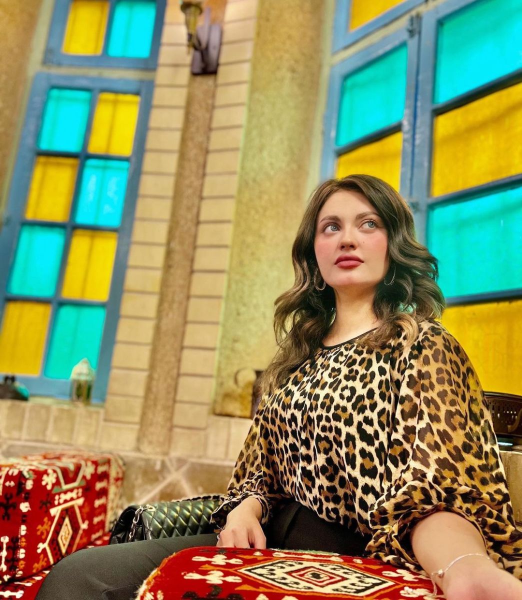 وبدت ندى الساهر بإطلالة عصرية، حيث ارتدت بلوزة بنقشة التايجر الشهيرة باللون البني والبيج، ونسقت معه بنطال أسود كلاسيكي، مما عكس أنوثتها وقوامها الممشوق.