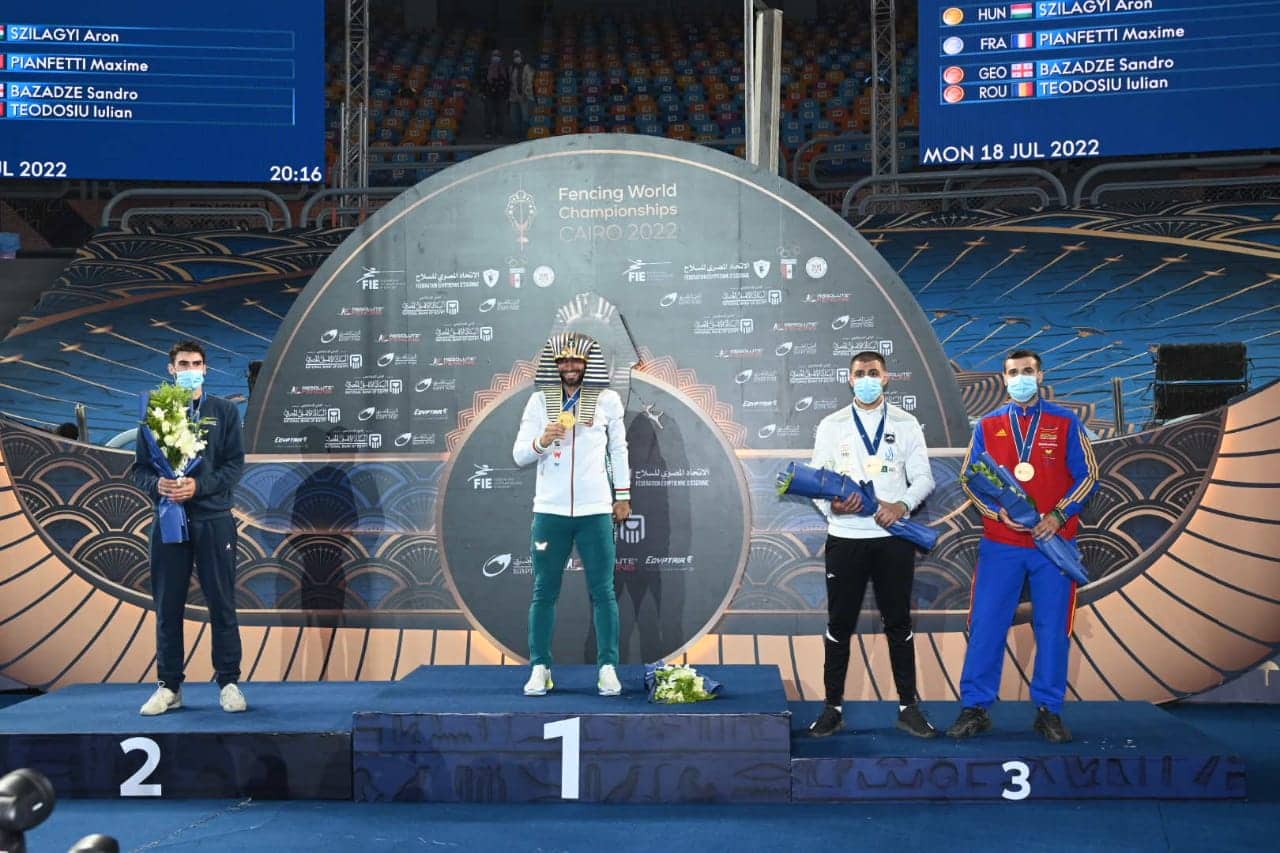 حقق أرون سيزيلاجي لاعب منتخب المجر الميدالية الذهبية لسلاح السيف في بطولة العالم للمبارزة التي تستضيفها مصر خلال الفترة من ١٥ حتى ٢٣ يوليو الجارى بمجمع الصالات المغطاة بهيئة إستاد القاهرة الدولى تحت رعاية الدكتور مصطفى مدبولي رئيس مجلس الوزراء.