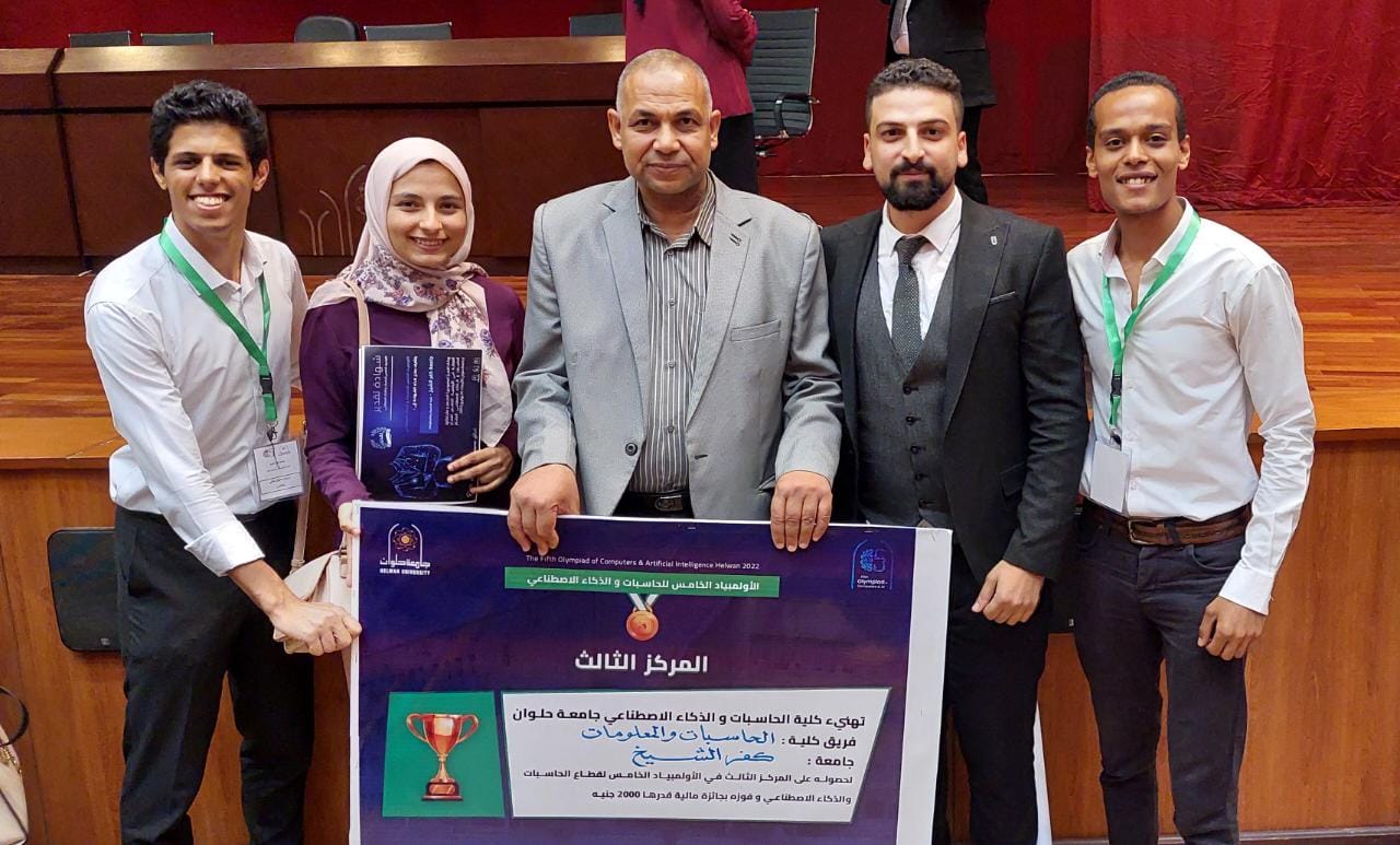 تحت رعاية الدكتور عبد الرازق دسوقي رئيس جامعة كفر الشيخ وإشراف الدكتور أسامة أبو سعده عميد كلية الحاسبات والمعلومات، فاز طلاب كلية الحاسبات والمعلومات بالجامعة ، اليوم الأربعاء ، بالمركز الثالث علي مستوى الجامعات المصرية في اللأولمبياد الخامس بقطاع الحاسبات والذكاء الاصطناعي والمنعقد  بمجمع الفنون والثقافة بجامعة حلوان تحت رعاية الدكتور خالد عبد الغفار وزير التعليم العالي والبحث العلمي، و الدكتور ممدوح مهدي القائم بعمل رئيس جامعة حلوان، و الدكتور إيمان ثروت رئيس قطاع الحاسبات والذكاء الاصطناعي.