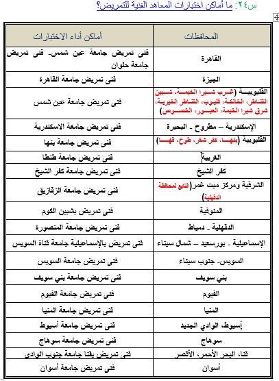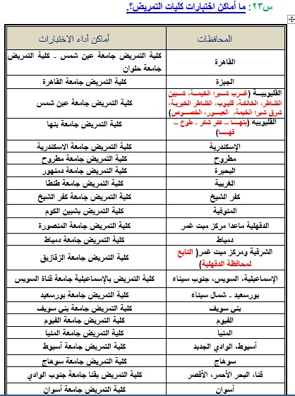 • ثم بعد ذلك تظهر للطالب قائمة بأنواع اختبارات القدرات المتاحة له، والكليات، والأماكن المخصصة لأداء هذه الاختبارات، والمواعيد المحددة.