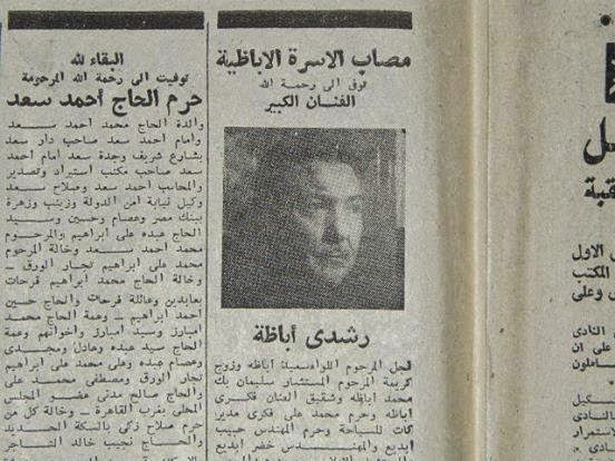 وكان أخطر ماتعرض له رشدي أباظة بعد وفاته بدقائق هو رفض والدته الحضور إلى المستشفى لإلقاء النظرة الأخيرة عليه، بسبب الخلافات الشديدة بينهما، لكنها عادت عن قرارها وتوجهت إليه وكان اللقاء الأول لها بحفيدتها.