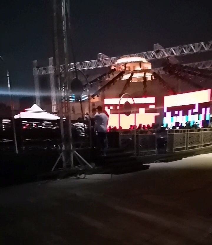حاوط المسرح الغنائي لكاظم سور من الذهب مع تجهيزات ضوئية وصوتية تتناسب مع حجم المسرح وضخامة الحفل.