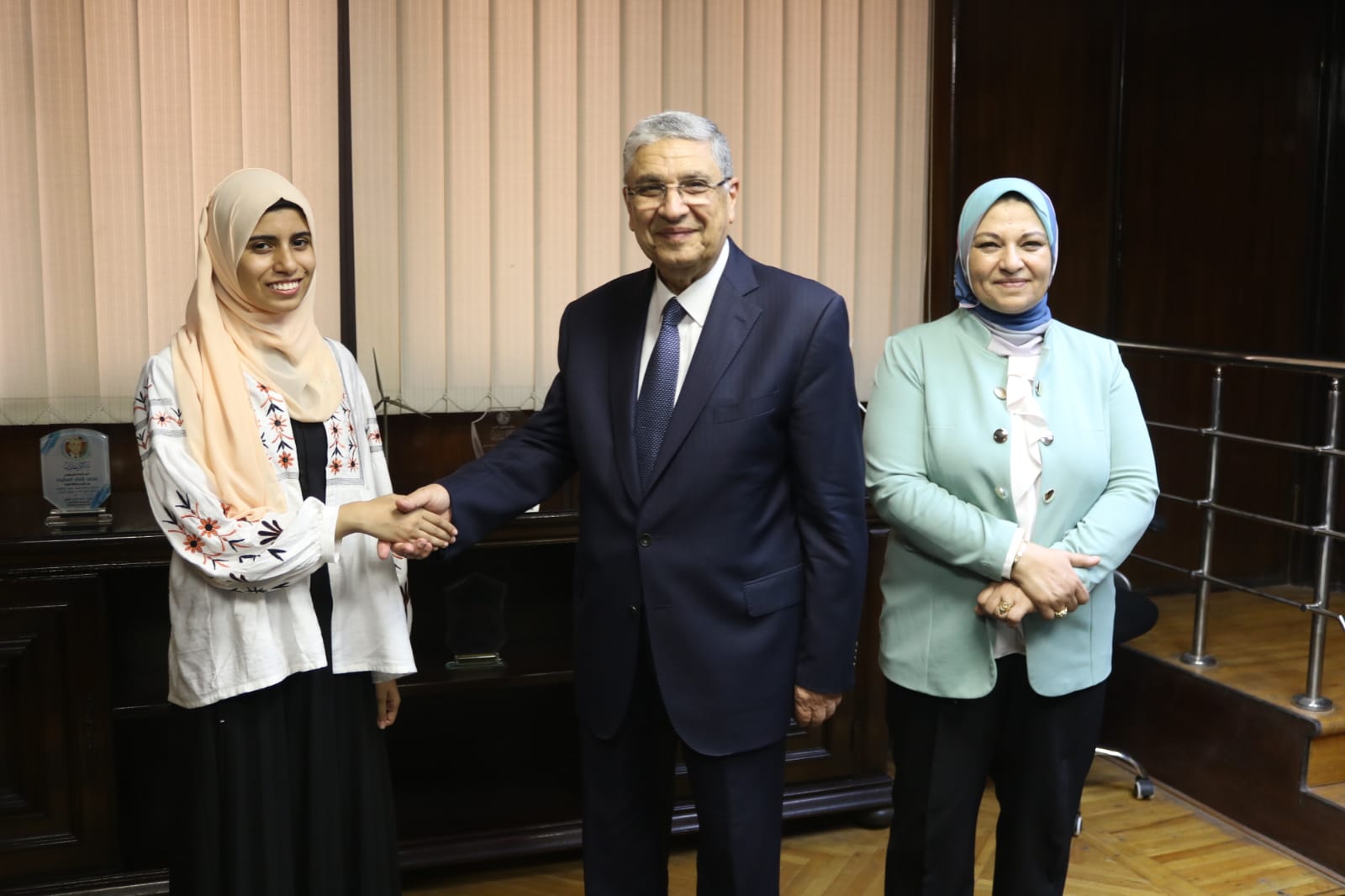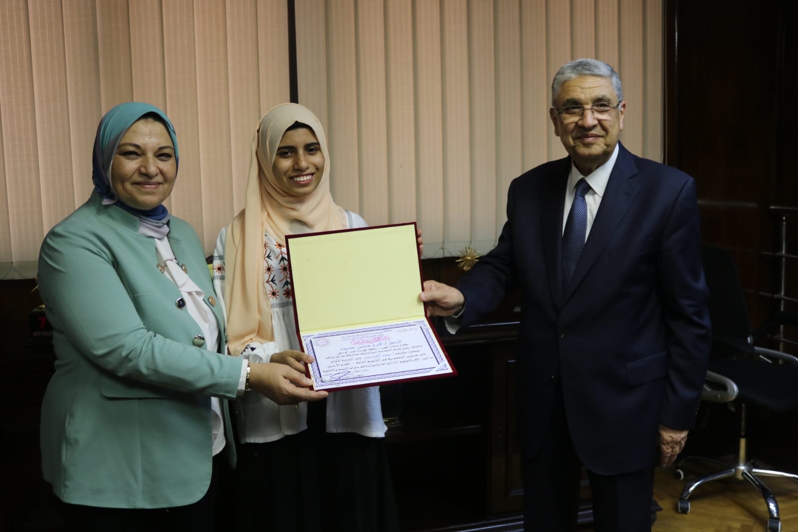 في إطار تنفيذ توجيهات القيادة السياسية والدولة المصرية ممثلة فى قطاع الكهرباء الذى يعد أحد القطاعات الهامة بالدولة بدعم وتشجيع الشباب ومساندته ،وايماناً من اهمية مشاركة العاملين فرحتهم بتفوق ابنائهم قام الدكتور محمد شاكر وزير الكهرباء والطاقة المتجددة بتكريم زينب أكرم حسن لحصولها على المرتبة الأولى على مستوى الجمهورية فى الثانوية العامة عن القسم الأدبى وهى نجلة الزميل أكرم حسن حميده من العاملين بقطاع شبكات الفيوم منطقة كهرباء مصر الوسطى، وذلك بحضور المهندس جابر الدسوقي رئيس الشركة القابضة لكهرباء مصر، و المهندسة صباح مشالي رئيس الشركة المصرية لنقل الكهرباء .