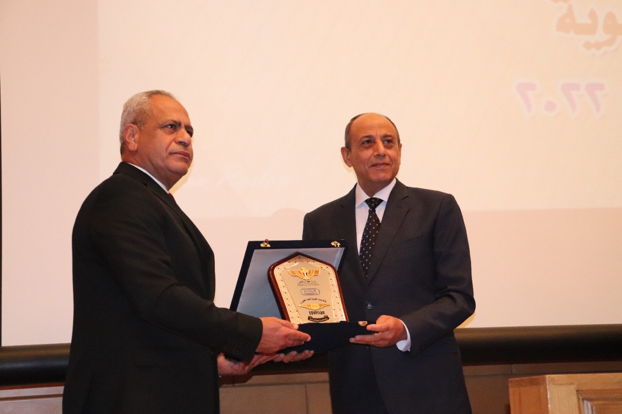 وقدم الطيار عزت متولى درع الأكاديمية للفريق محمد عباس حلمى وخلال كلمته وجه وزير الطيران المدنى الخريجين الجدد بضرورة مواكبة أحدث علوم الطيران وبرامج التدريب المتطورة والاهتمام بنظم الجودة الشاملة والتفانى فى العمل والانضباط فى الأداء مشيرا إلى أن الأكاديمية المصرية لعلوم الطيران تمتلك إمكانيات وقدرات علمية وتدريبية متميزة فى مختلف تخصصات الطيران حيث أصبحت مركزاً إقليمياً ودولياً لدراسة علوم الطيران المدنى لتصبح الوجهة الدراسية الأكثر إقبالًا فى المنطقة خلال المرحلة القادمة من خلال تطوير المنظومة التعليمية والتدريبية وفقاً لأحدث المعايير العالمية فى منظومة  الطيران المدنى