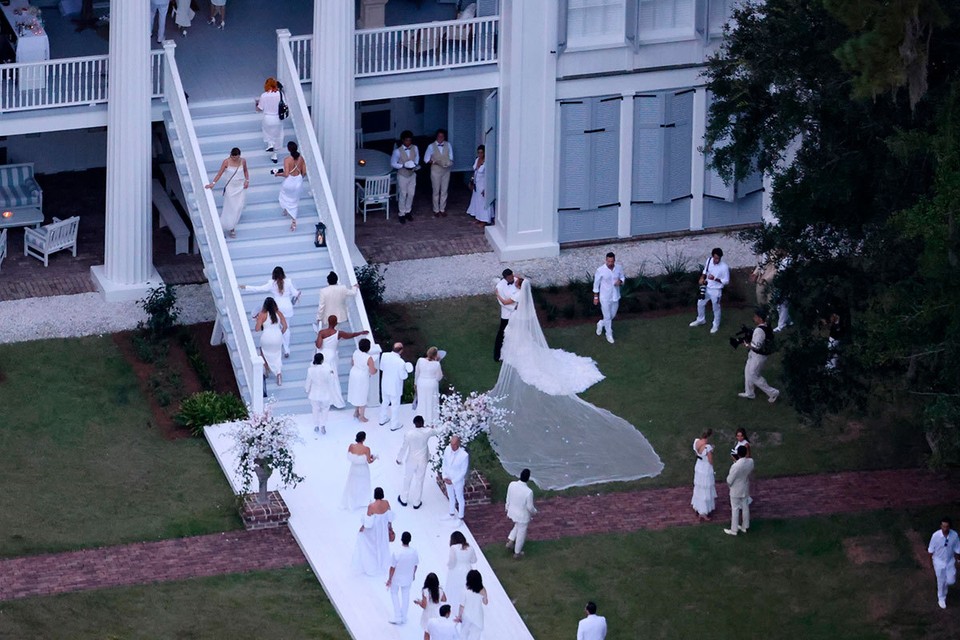 نسقت جنيفر لوبيز الملابس مع الضيوف الذين طُلب منهم أن يرتدوا اللون الأبيض أيضا، بينما تم دعوتهم أمس الأحد لحضور حفل شواء على شرف العروسين داخل حديقة المنزل.