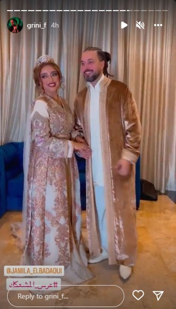 تداولت صور المطرب عبدالفتاح الجريني والفنانة جميلة البداوي بعد احتفالهما بزفافهما، فحرصا على مشاركة متابعيهم أجدد الصور من الحنة والزفاف الذي كان بنكهة مغربية مميزة.