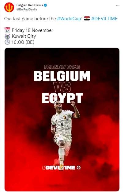 ونشر الحساب الرسمي لمنتخب بلجيكا عبر صفحته الرسمية على موقع التواصل الاجتماعي تويتر صورة وكتب عليها: "مباراتنا الأخيرة