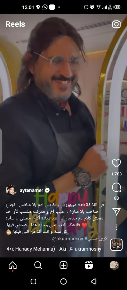 آيتن عامر تهنئ أكرم حسني بعيد ميلاده .. شاهد