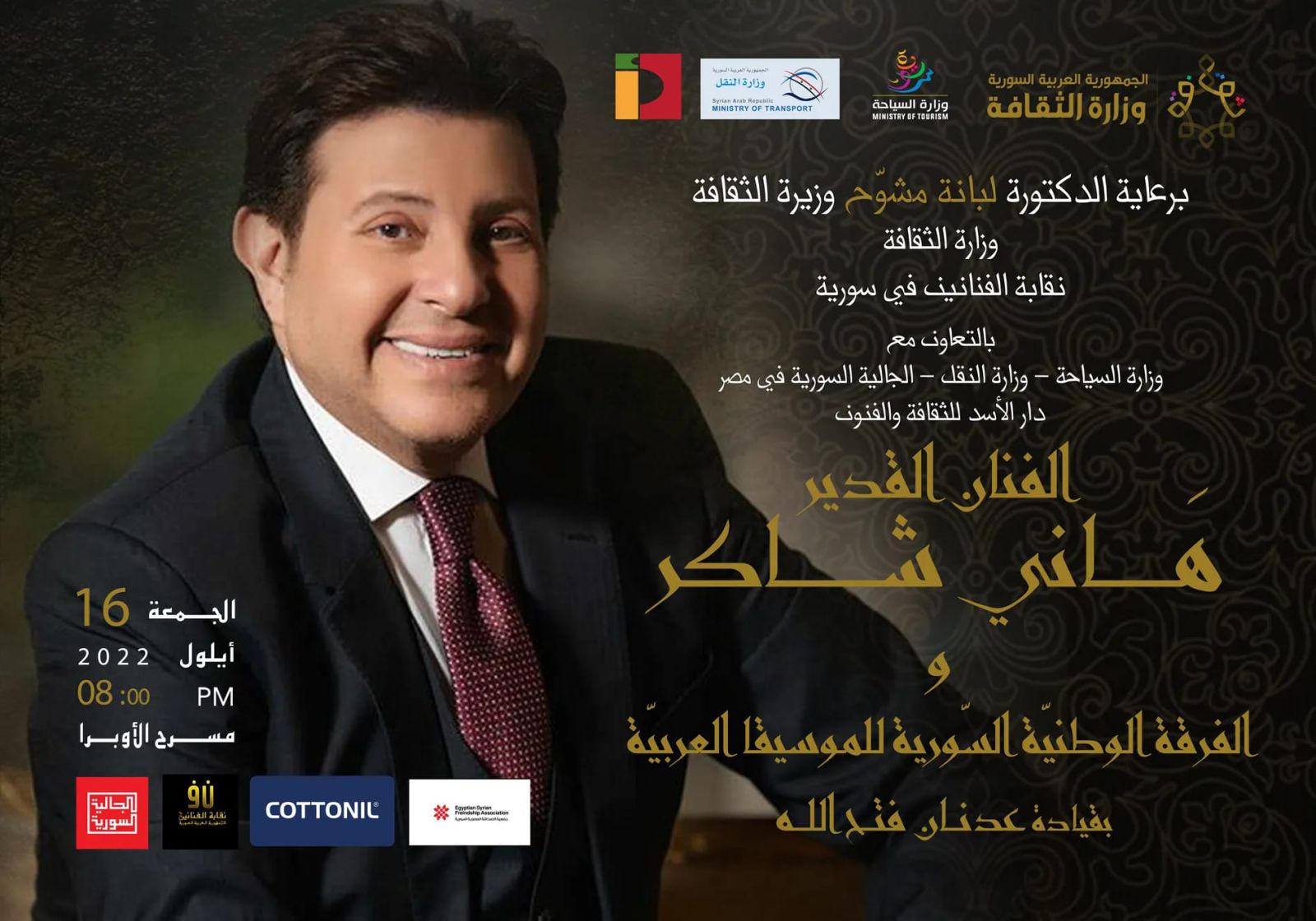 اقرأ أيضًا..هاني شاكر على مسرح أوبرا دمشق غدًا