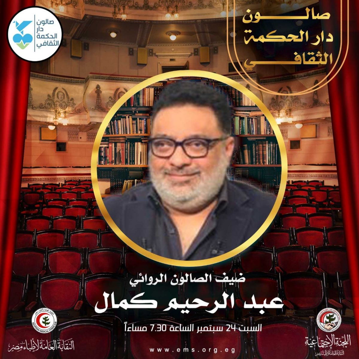 أعلنت النقابة العامة للأطباء، عن فعاليات صالون دار الحكمة الثقافي لشهر سبتمبر، إذ يستضيف الصالون الروائي عبدالرحيم كمال، وذلك يوم السبت 24 سبتمبر الجاري في تمام الساعة السابعة والنصف مساءً بدار الحكمة.
