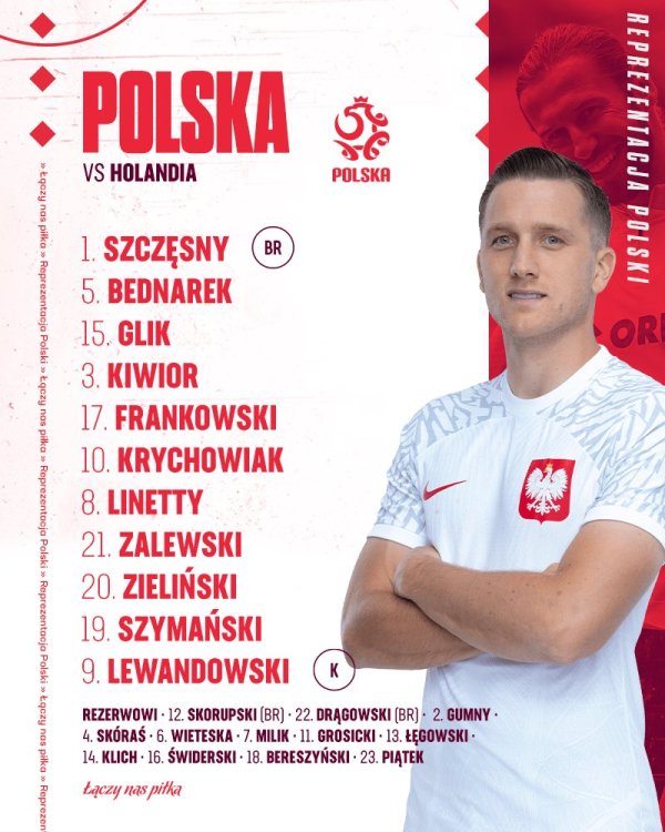 أعلن الجهاز الفني لمنتخب بولندا عن التشكيل الرسمي للمباراة التي ستجمعه أمام نظيره هولندا على ملعب الاستاد الوطنى في وارسو، ضمن منافسات الجولة الخامسة للمجموعة الرابعة بدور المجموعات فى دورى الأمم الأوروبية.