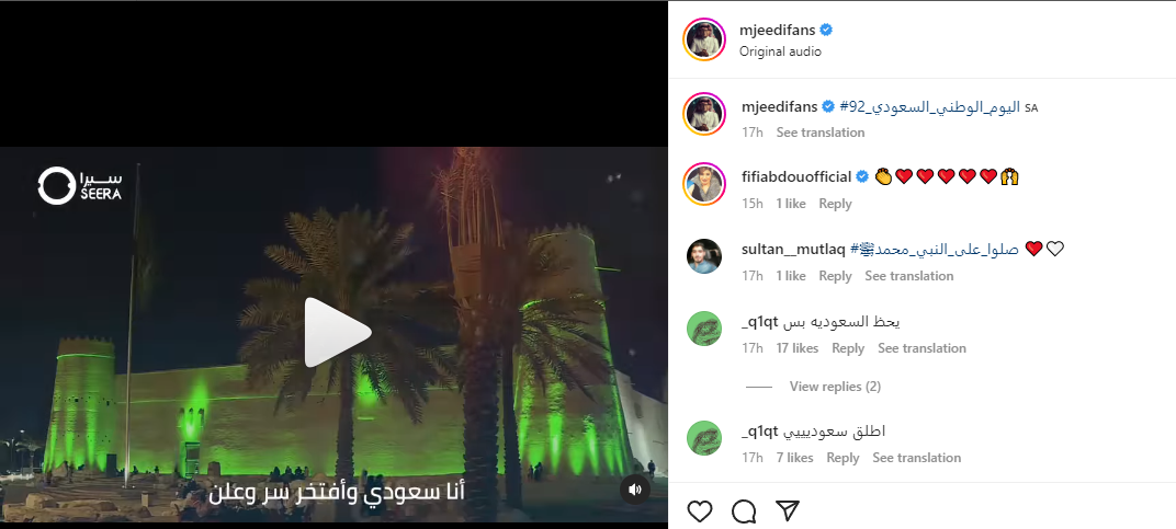 وعلق الفنان عبدالمجيد عبدالله على الفيديو قائلًا: "اليوم الوطني السعودي 92".