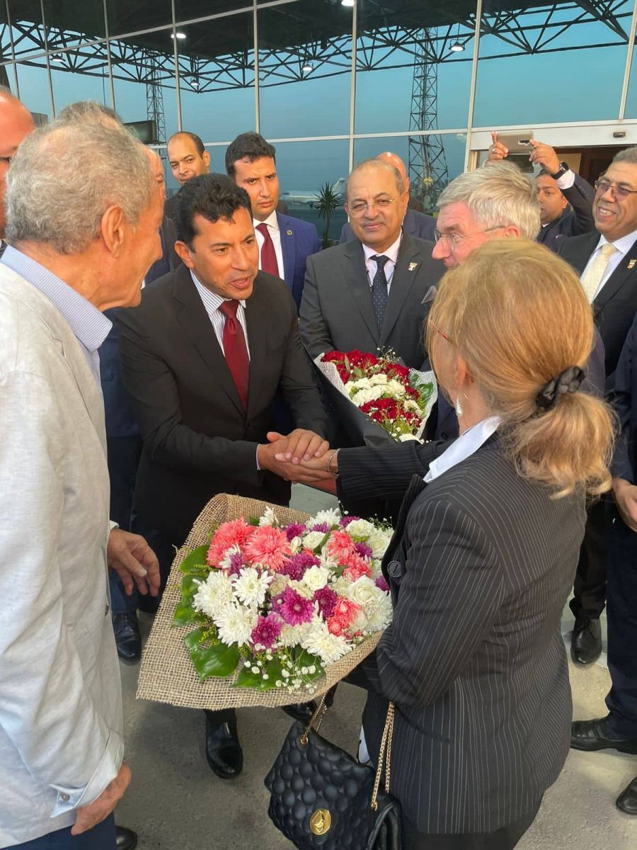وزير الرياضة يستقبل رئيس الأولمبية الدولية بمطار القاهرة
