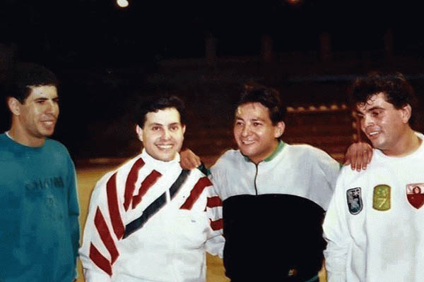 تأتي الصورة الأولى لعمرو دياب بصحبة الفنان هاني شاكر والفنان سامح الصريطي والكابتن أحمد شوبير، وقد ارتدوا جميعًا الملابس الرياضية، حيث كانت كرة القدم هي التي جمعتهم في تلك الصورة.