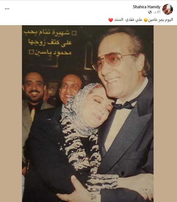 شاركت الفنانة شهيرة جمهورها بصورة تجمعها بزوجها الفنان القدير محمود ياسين في الذكرى الثانية لوفاته، وذلك عبر صفحتها الشخصية على موقع التواصل الاجتماعي الشهير "فيسبوك".