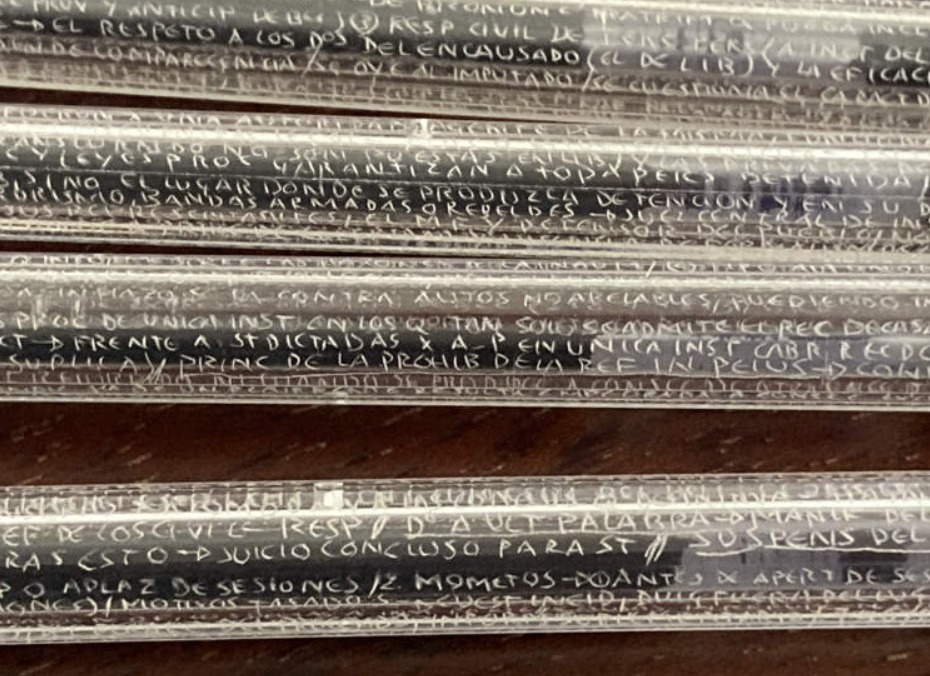 وقالت المدرسة "ملخص قانون الإجراءات الجنائية في أقلام حبر. يا له من فن"، وتابعت "أوراق الغش ليست كما كانت عليه من قبل"، وحرصت المعلمة الإسبانية، على مشاركة الصور فقط لتُظهر لزملائها المعلمين براعة طلابها.