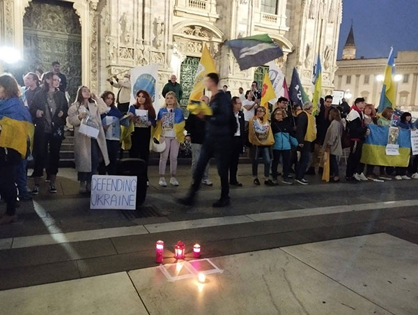 أقام "إيطاليا فيفا" و"الحزب الديمقراطي وأوروبا" و"الحركة المدنية" في ميدان الدومو بمدينة ميلانو، وقفة إحتجاجية تعاطفا مع الشعب الأوكراني ومطالبة الاتحاد الأوروبي بالاستمرار دون تردد، في سياستها العامة في دعم الشعب الأوكراني، وبذل كل الجهود الممكنة من أجل تحقيق سلام عادل والحد من الاعتداءات الروسية على أوكرانيا.