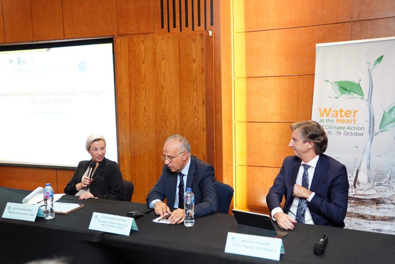 جاء ذلك خلال مشاركتها فى جلسة عمل عن "مشروع تعزيز التكيف مع تغير المناخ في دلتا نهر النيل في مصر" ، وهو المشروع الذي تموله الحكومة المصرية وصندوق المناخ الأخضر وينفذه برنامج الأمم المتحدة الإنمائي بهدف تحقيق التكيف مع آثار تغير المناخ في المنطقة الساحلية، وذلك على هامش إسبوع القاهرة الخامس للمياه المنعقد تحت عنوان " المياه في قلب العمل المناخى"، بمشاركة الدكتور هاني سويلم وزير الموارد المائية والري، واليساندرو فراكاسيتي الممثل المقيم لبرنامج الأمم المتحدة الإنمائي.
