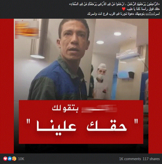 وجاء في المنشور: "الرَّاحِمُونَ يَرْحَمُهُمُ الرَّحْمَنُ، ارْحَمُوا مَنْ فِي الأَرْضِ يَرْحَمْكُمْ مَنْ فِي السَّمَاءِ"، متابعاً: "حقك فوق راسنا كلنا يا طيب .. بنوجهلك دعوة تنورنا في أقرب فرع أنت وأسرتك".