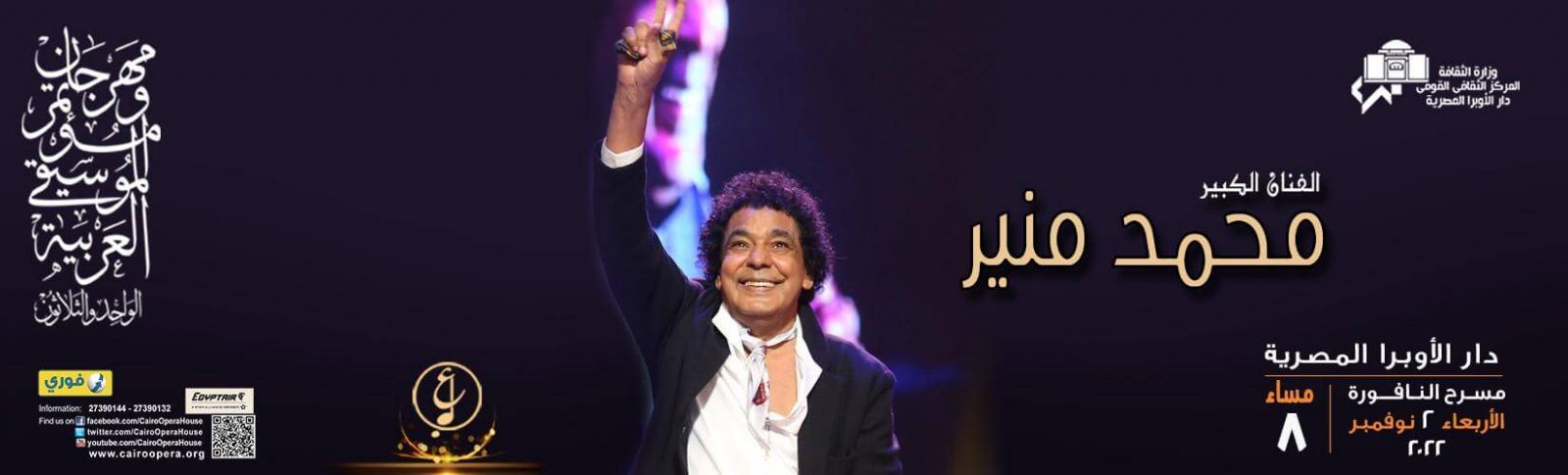 يشارك الكينج محمد منير، في فعاليات مهرجان الموسيقى العربية 31، المقامة حاليًا في فروع الأوبرا الثلاثة، وتضم عددًا كبيرًا من رموز الغناء العربي بجانب أشهر أصوات الأوبرا.