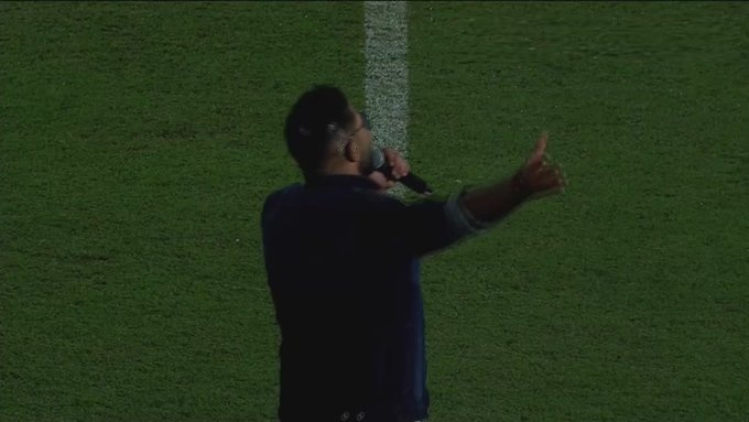 أشعل المطرب أحمد سعد حماس الجمهور المتواجد في استاد هزاع بن زايد في الإمارات قبل انطلاق مباراة السوبر المصري بين ناديي الزمالك والأهلي.