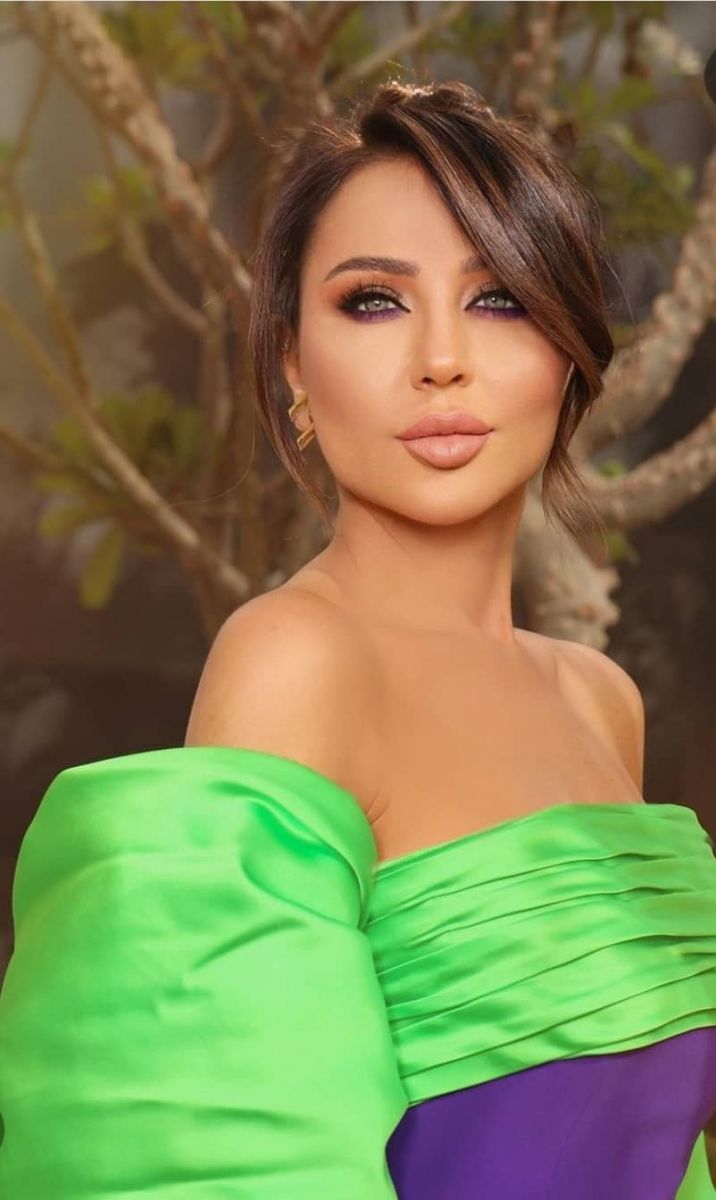 وبدت رابعة الزيات بإطلالة مبهجة مفعمه بالانوثة والجاذبية في آن واحد، حيث ارتدت فستان ميدي صمم من قماش ناعم الساتان الأخضر الفسفوري مع الموف الغامق مما عكس قوامها الممشوق ووزنها المثالي،