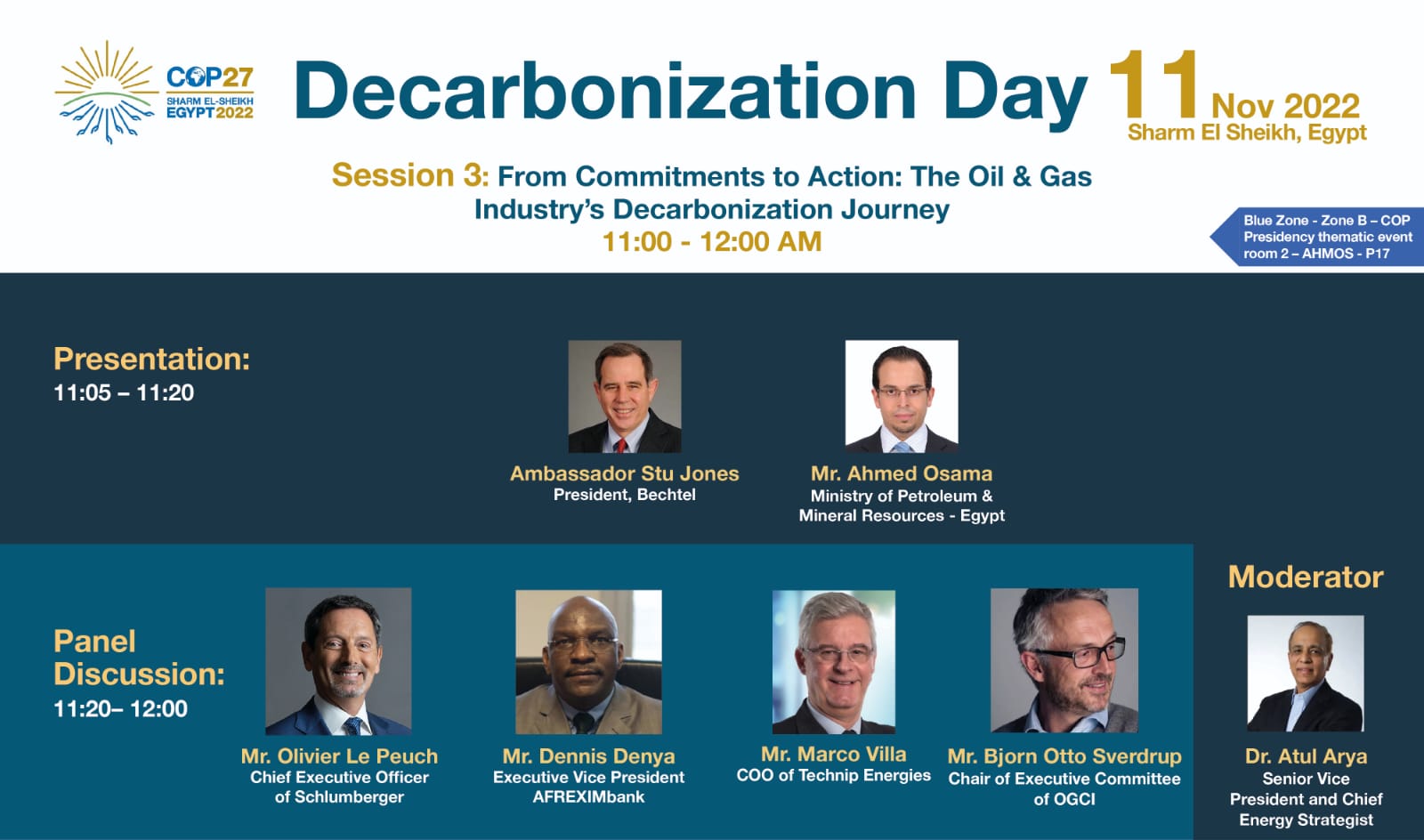 تهتم الجلسة الثانية لصناعة البترول والغاز فى يوم إزالة الكربون المقرر عقده يوم 11 نوفمبر الجاري، ضمن فعاليات قمة الأمم المتحدة للمناخ في شرم الشيخ بإلقاء الضوء على جهود صناعة البترول والغاز فى ازالة الكربون بدءًا من التعهدات إلى التنفيذ الفعلي.