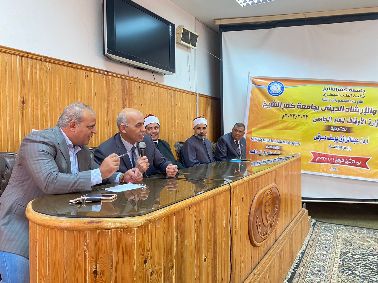 جاء ذلك تحت رعاية الدكتور محمد مختار جمعة وزير الأوقاف و الدكتور عبد الرازق دسوقي رئيس الجامعة، ويأتي ذلك ضمن سلسلة ندوات القوافل الدعوية والتى تأتي تباعاً بكليات الجامعة المختلفة، وذلك لرفع الوعي الديني لدى شباب الجامعة، وتصحيح بعض المفاهيم والأفكار المغلوطة.