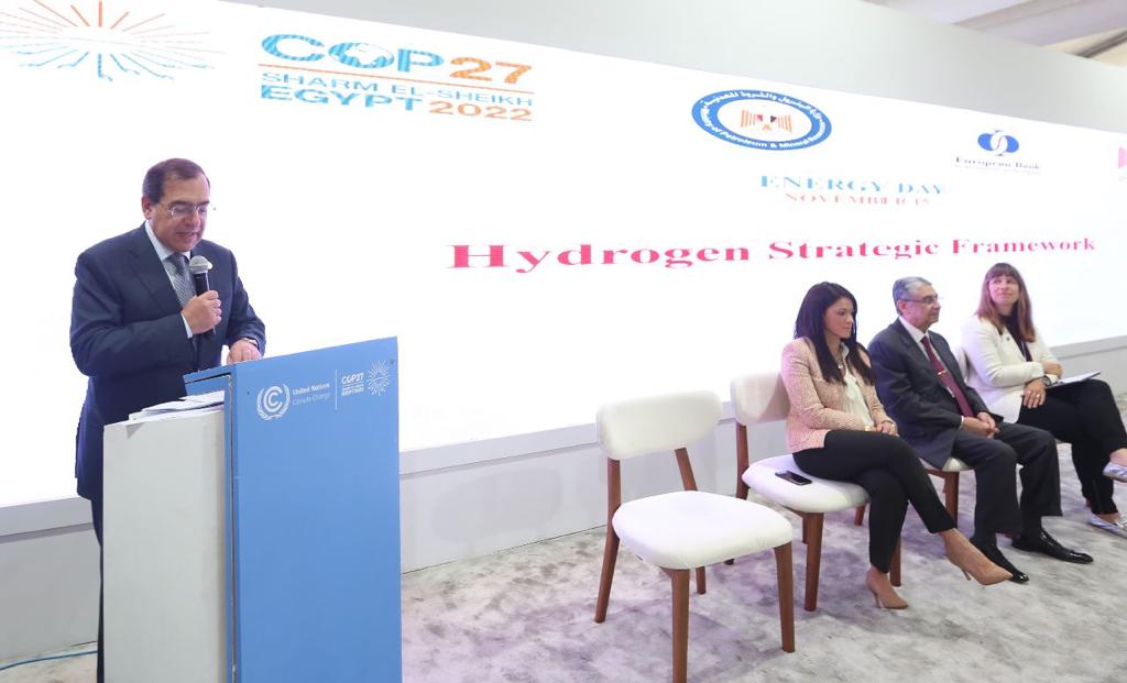 جاء ذلك خلال كلمته بمناسبة الإعلان عن اطار استراتيجية مصر للهيدروجين منخفض الكربون ضمن فاعليات قمة COP 27 بمدينة شرم الشيخ ، بحضور وزيرى الكهرباء والطاقة الجديدة والمتجددة والتعاون الدولى والمديرة الإقليمية للبنك الأوروبى للإنشاء والتنمية.