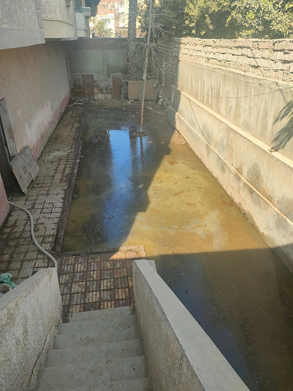 فقامت شركة "مياه الشرب والصرف الصحي" بمعاينة المنزل، وتبين لها إن المياه الموجودة من المصرف القديم الذي لم تتم ازالته.