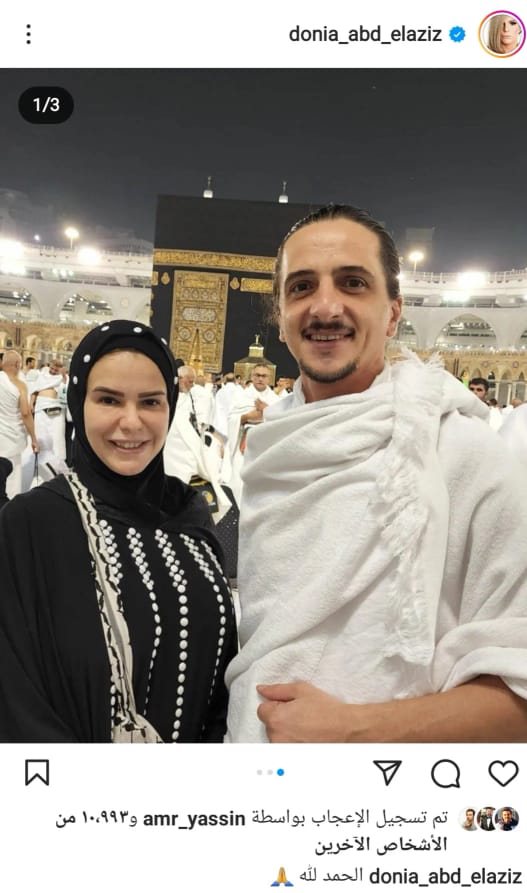 شاركت الفنانة دنيا عبد العزيز ، جمهورها صور لها من داخل الحرم المكي أثناء تأديها مناسك العمرة برفقة زوجها وذلك عبر حسابها الرسمي على موقع “إنستجرام” وعلقت عليها قائلة: “الحمد لله”.
