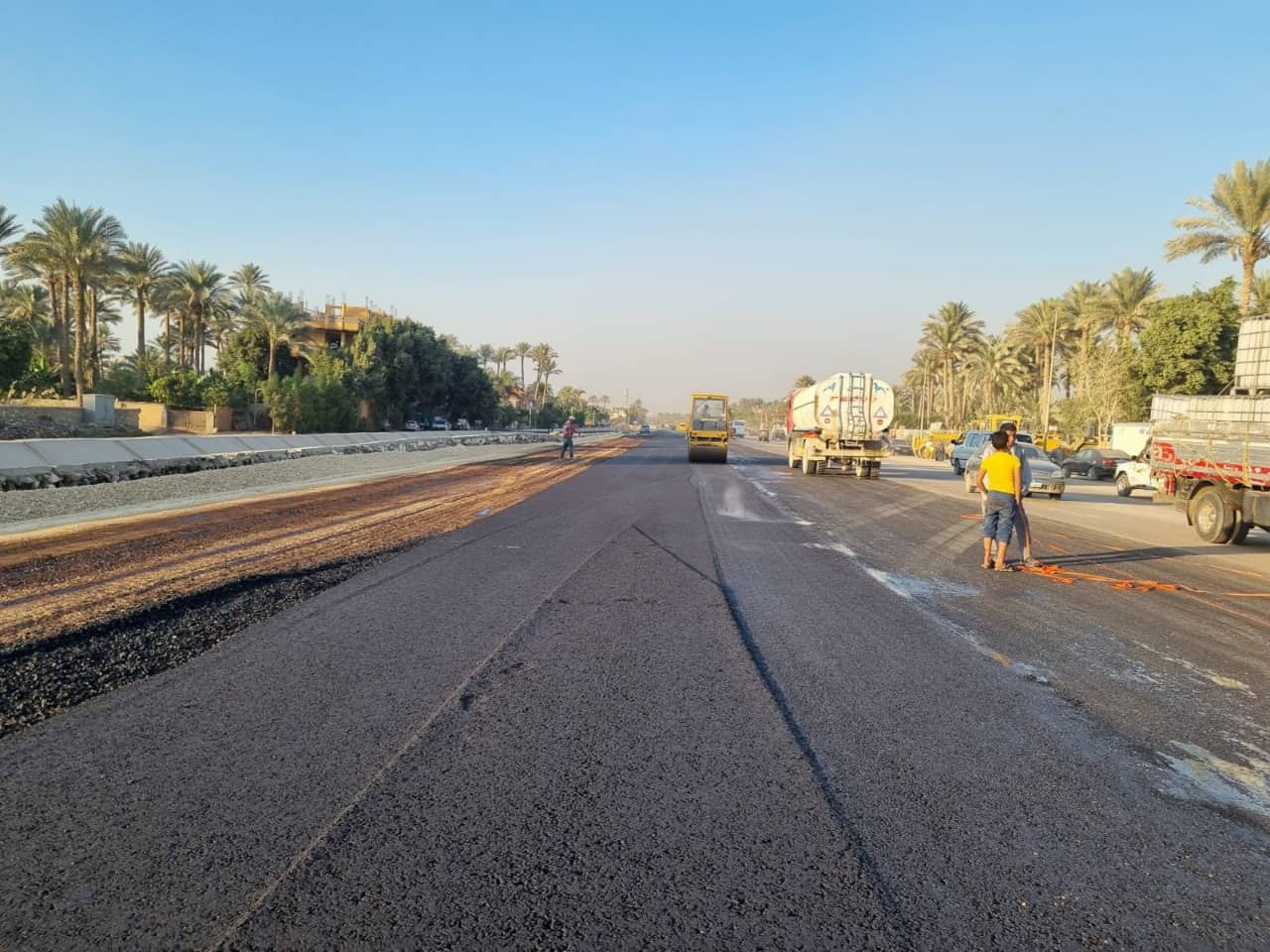 لتحسين الحركة المرورية والذي شهد وضع الطبقه الرابطه بالعديد من قطاعات الطريق وجاري الاستكمال.