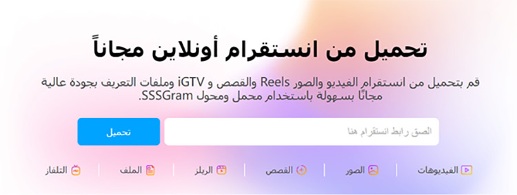 نقدم لك أفضل موقع تحميل فيديو انستقرام الذي يمكنك استخدامه بكل سهولة لتحميل الصور والفيديو ومقاطع Reels بطريقة مجانية وبجودة عالية باستخدام أداة SSSGram.