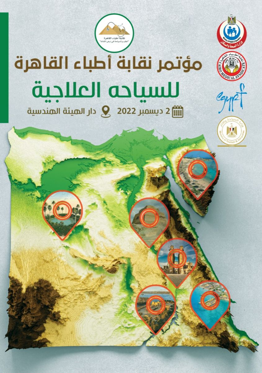 تنظم نقابة أطباء القاهرة المؤتمر النقابي الأول للسياحة العلاجية تحت عنوان "الطب والسياحة في أرض الكنانة" برعاية وزارتي الصحة والسكان والسياحة والآثار، وذلك يوم الجمعة الموافق ٢ ديسمبر بدار الهيئة الهندسية.