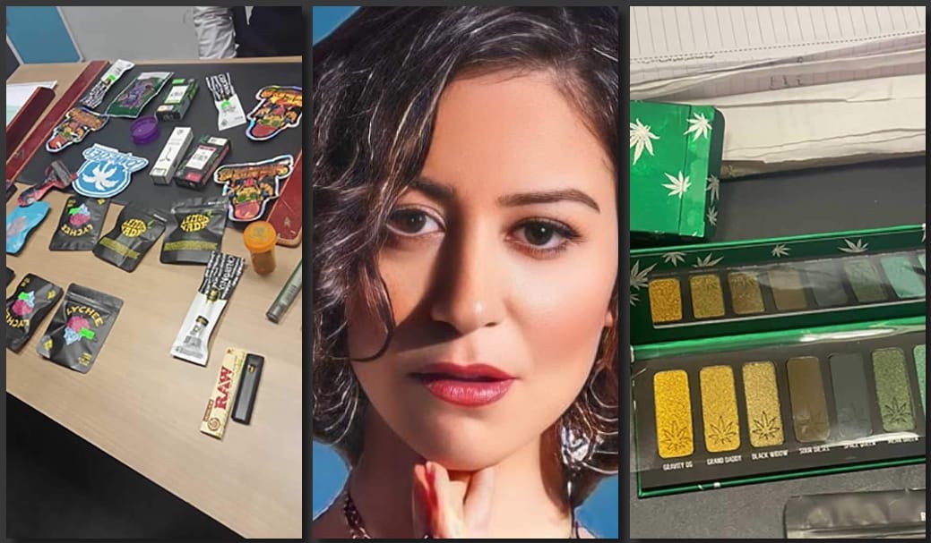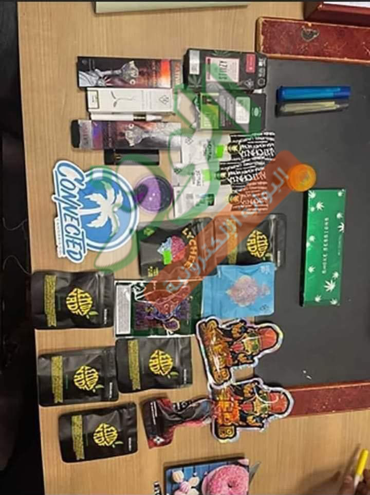 عثر رجال الجمارك على مجموعة من المواد المخدرة بحوزه منة شلبي وكانت تتضمن 12 كيسًا من الماريجوانا المخدر وزنت 90 جرامًا وكمية أخرى وزنت 16 جرامًا، و27 قطعة تشمل "فاب سجائر إلكترونية، وزيت حشيش، وقطع حلويات مخلوطة بنبات الماريجوانا".