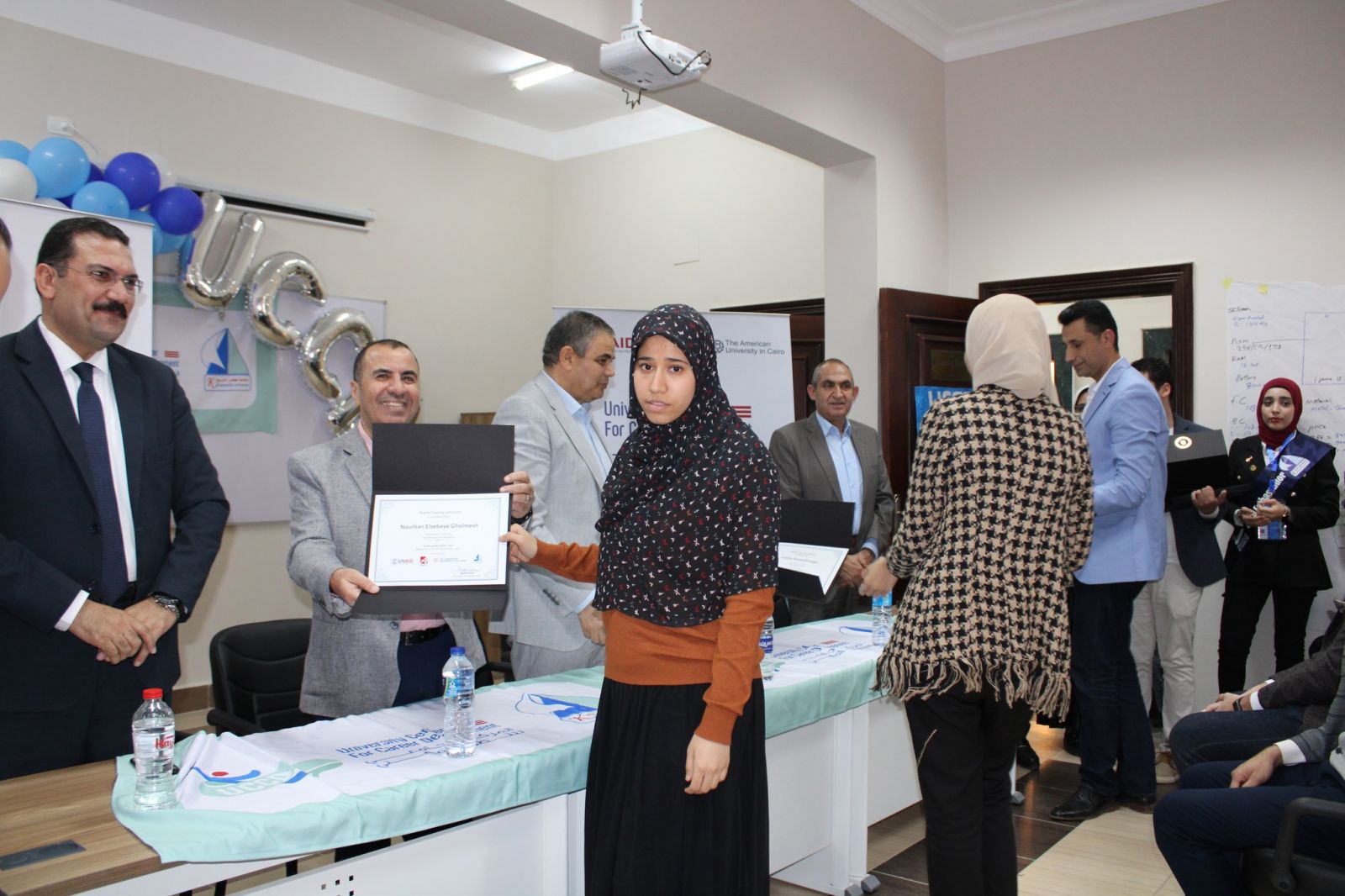 وفي ختام الاحتفال كرم رئيس الجامعة عضوا فريق عمل المركز الجامعي للتطوير المهنى بالجامعة، الدكتور معتصم دراز، الدكتور منى المعداوى وتسليمهما شهادات تميز وهدية تذكارية من الدكتور علاء غازى مدير المركز لدورهما المتميز.
